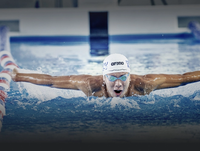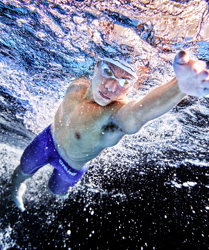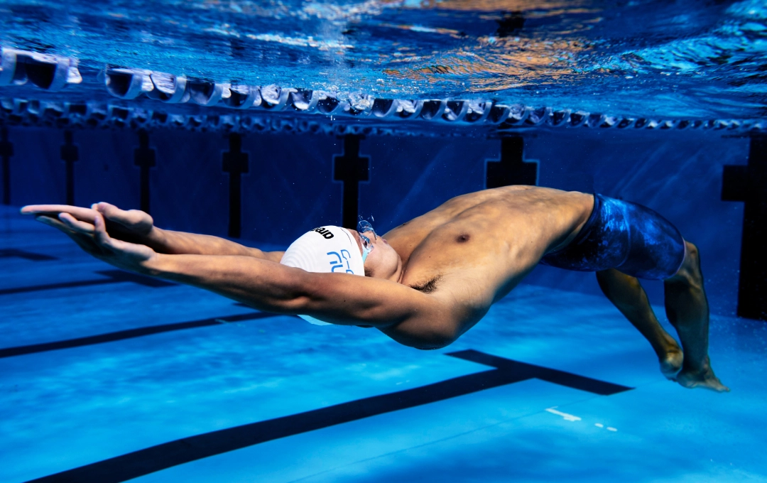 プロのコーチをして「分析不能」と評する松本の飛び込みセンス。本人いわく「そもそも飛び込みは得意ではない」そう。速く泳ぐことを意識し、抵抗のない完璧な着水を心がけた結果、しなやかで巧みな飛び込みで他の追随を許さない独自のスタイルに至っている。